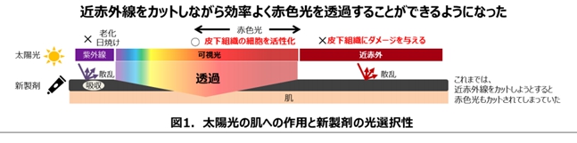肌に有害な紫外線と近赤外線をカットし、赤色光だけを選択し透過させる機能を持った日焼け止めなんです。