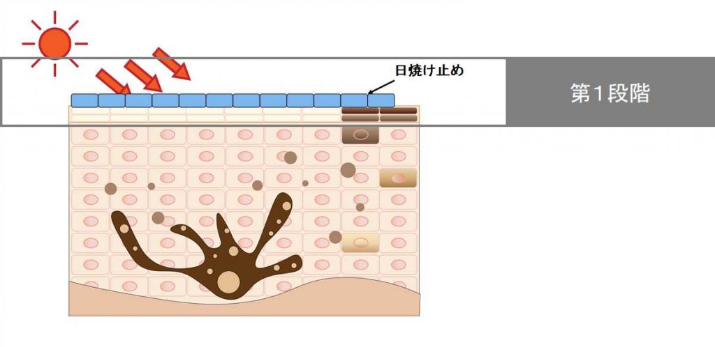 メラノサイトへの影響が強く、UVBを浴びると、メラノサイトがメラニンを過剰に作ってしまうことで、シミや色素沈着の原因となります。