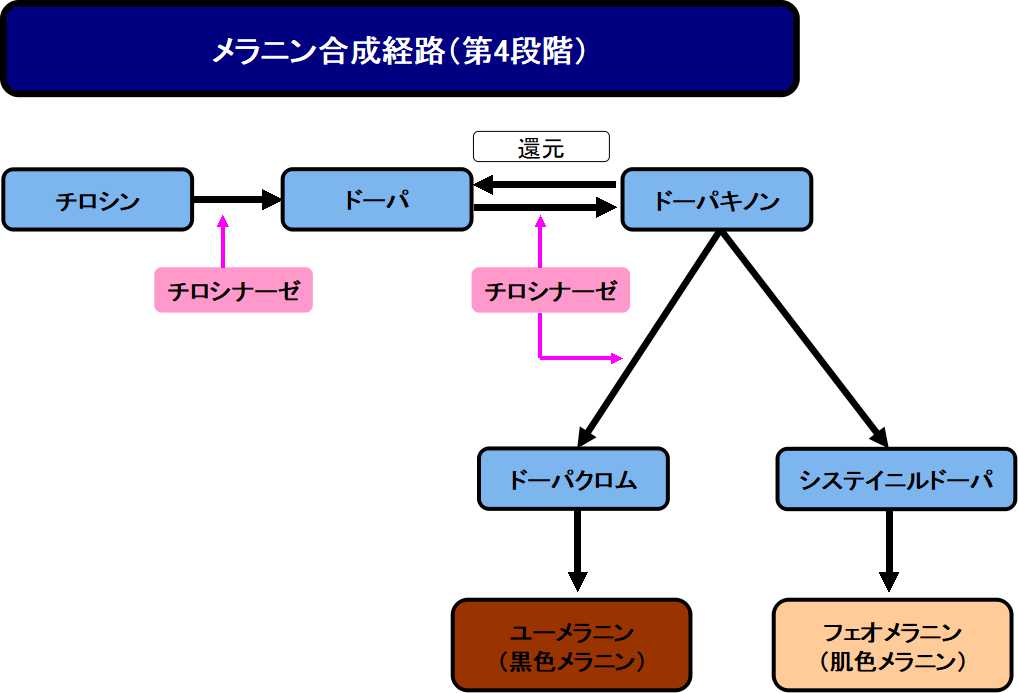 メラニンを作る工程をブロックする作用は、肌色メラニンであるユウメラニンを作る工程までブロックしてしまう可能性があります。