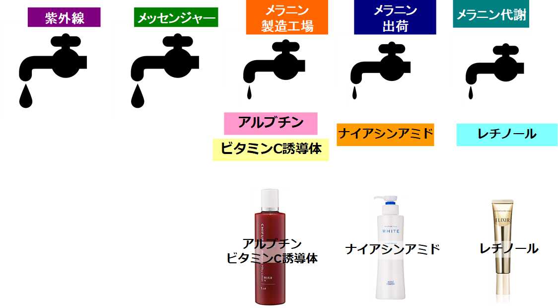 美白を中心に美容成分に関する情報と作用機序の違う成分の組み合わせを紹介するサイト