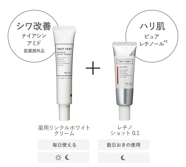 レチノショット0.1が数日おきにしか使えない人は、薬用リンクルホワイトクリームの併用推奨とのこと。