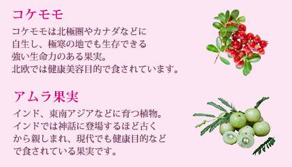 コケモモ+アムラ果実の組み合わせは、コラーゲンを作る力を相乗効果的に高めてくれます。
